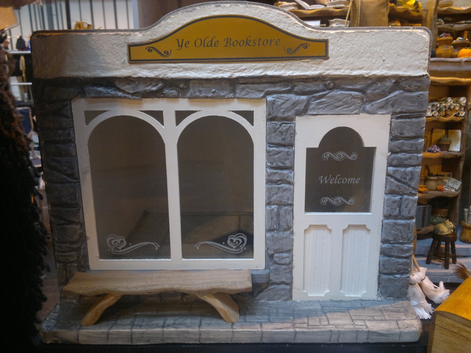 A small, handmade shop, originally made for my needlework and little pieces of miniature china that I had collected. It is now dismantled, but may get resurrected!